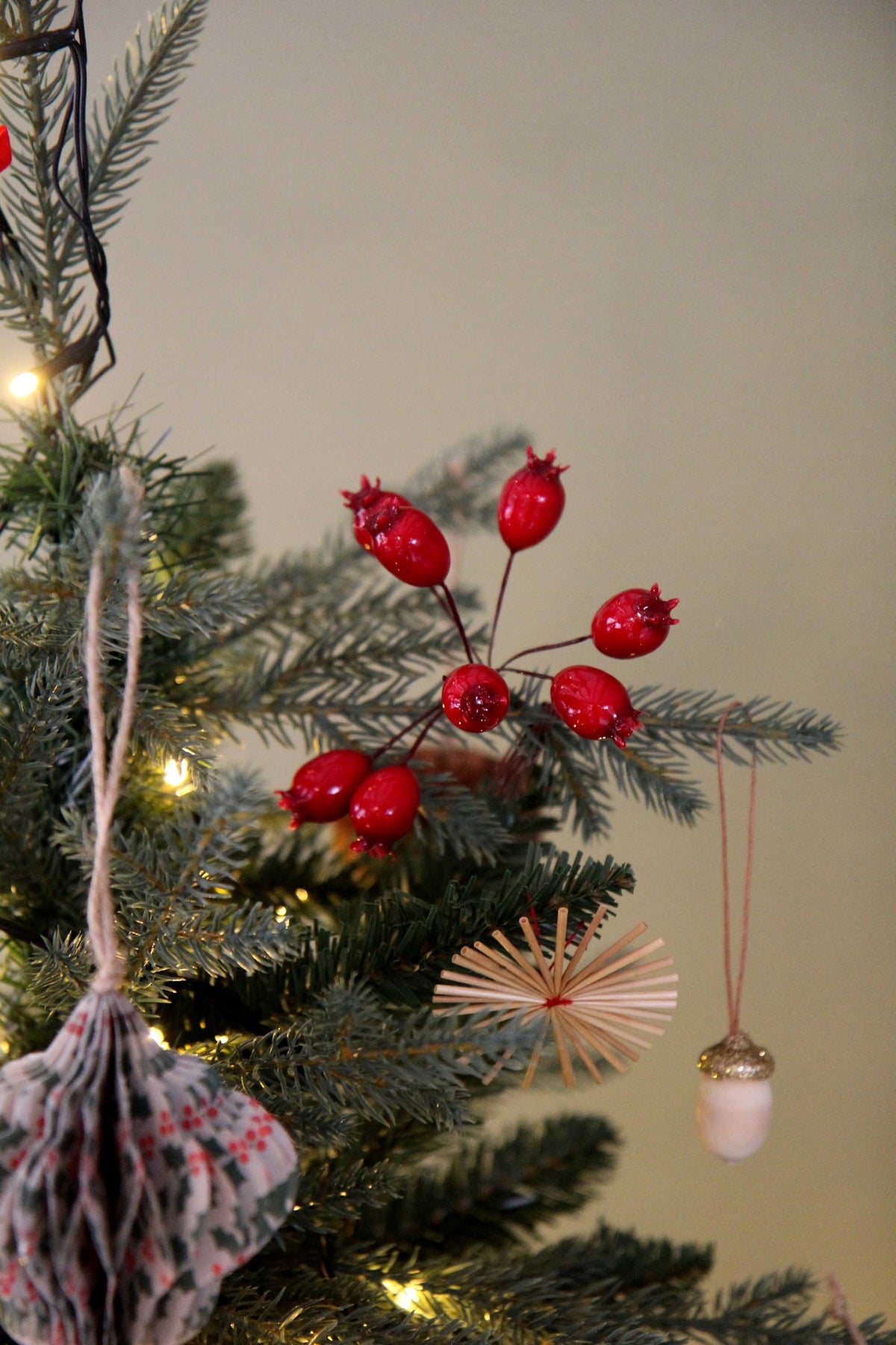 Richly coloured and beautifully detailed, this mini bouquet of Shiny Red Rosehip berries is perfect for adding a touch of autumnal warmth and festive cheer to your home. Whether woven into a seasonal wreath, or nestled into a Christmas garland, its glossy red berries and lifelike stems offer a vibrant, low-maintenance alternative to natural foliage.