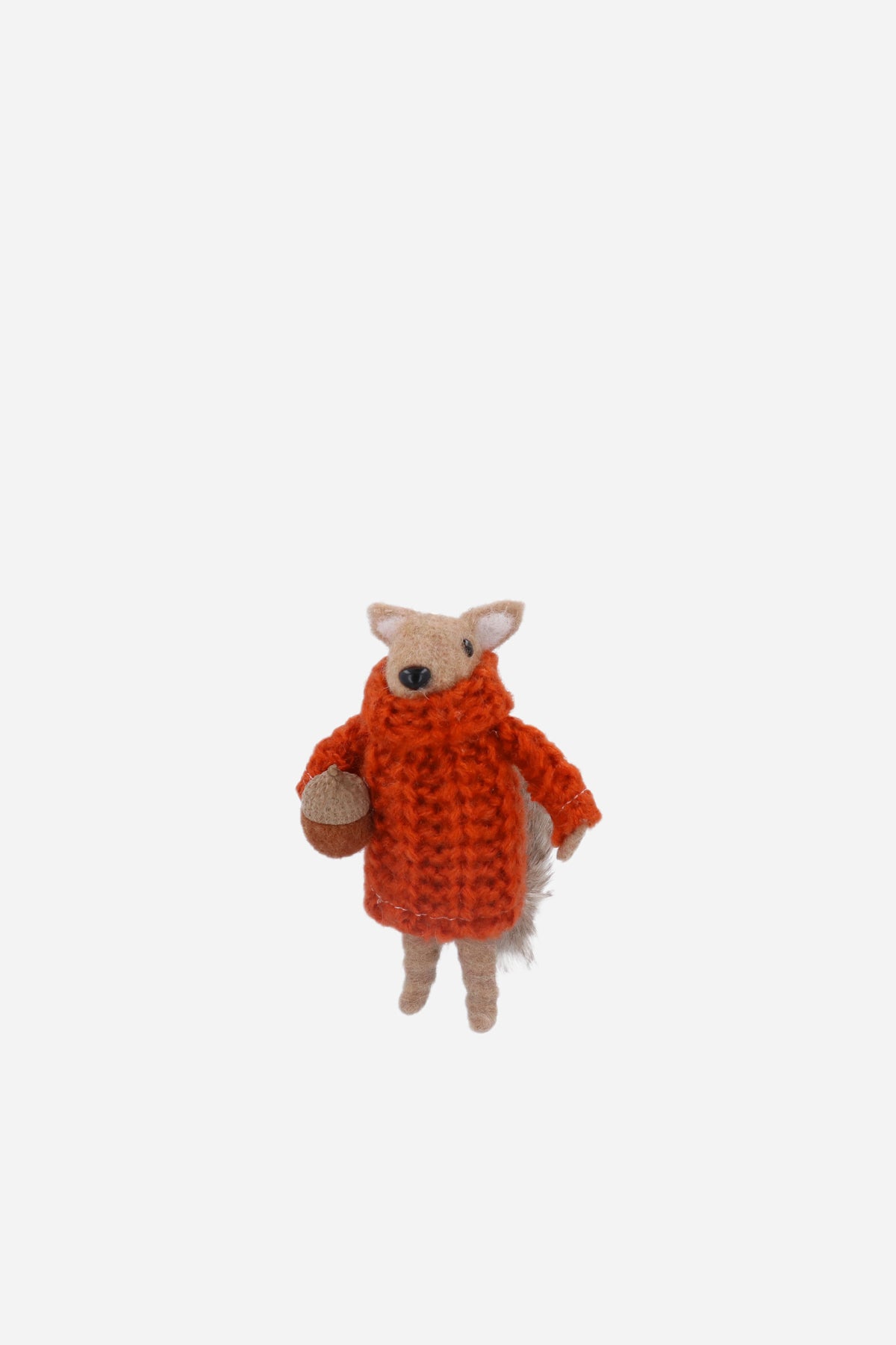 A sweet little felt squirrel, dressed in a snug knitted jumper, brings rustic charm and festive cheer to your home this Christmas. Crafted from a soft wool‑blend, this friendly creature makes an ideal addition to any tree, mantelpiece, or wreath, blending woodland warmth with seasonal style.