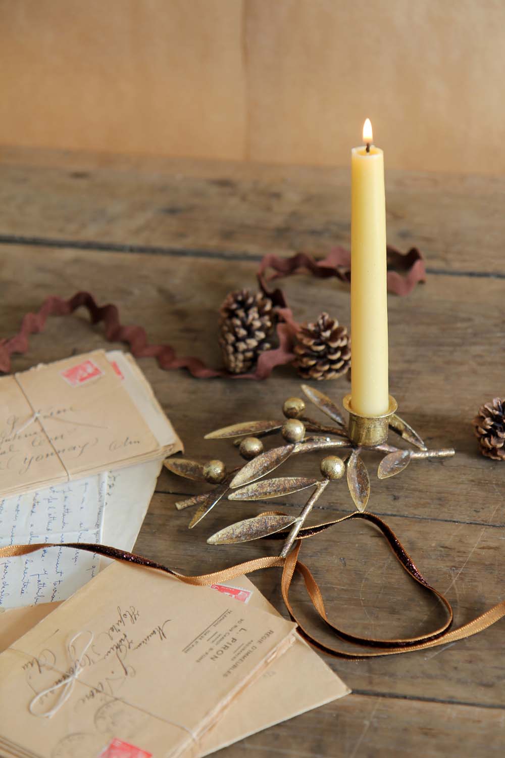 Bring an elegant touch to your Christmas dining table with this charming gold candle holder. Pair with one of our beeswax dinner candles for a timeless touch.