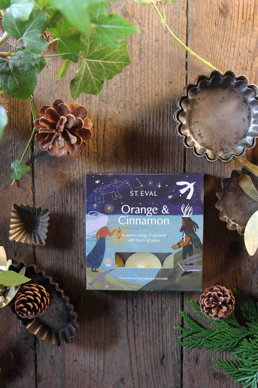 Box of 9 Orange and Cinnamon t-lights from St Eval Candle Company.
