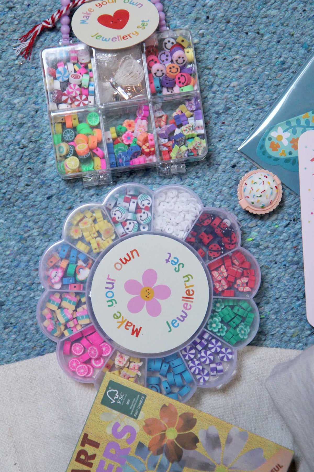 This delightful jewellery-making kit is shaped like a handbag and packed with colourful beads, clasps, and elastic cord.