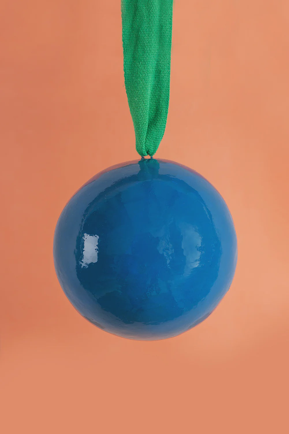 Add a pop of contemporary charm to your festive decor with this bright blue bauble, accented with a fresh green ribbon. The bold colour combination brings a modern twist to traditional seasonal decorations, making it a standout piece on any Christmas tree. Hand-painted and crafted with care, each bauble offers a unique touch, perfect for adding personality and vibrancy to your seasonal displays.
