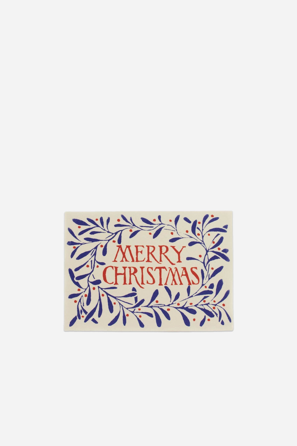 This elegant set of ten Christmas Cards features a hand-drawn wreath design in French Ultramarine Blue and Coral, with the words “Merry Christmas” thoughtfully lettered in the centre. The soft ivory uncoated cardstock provides a warm backdrop for the bold, festive colours.