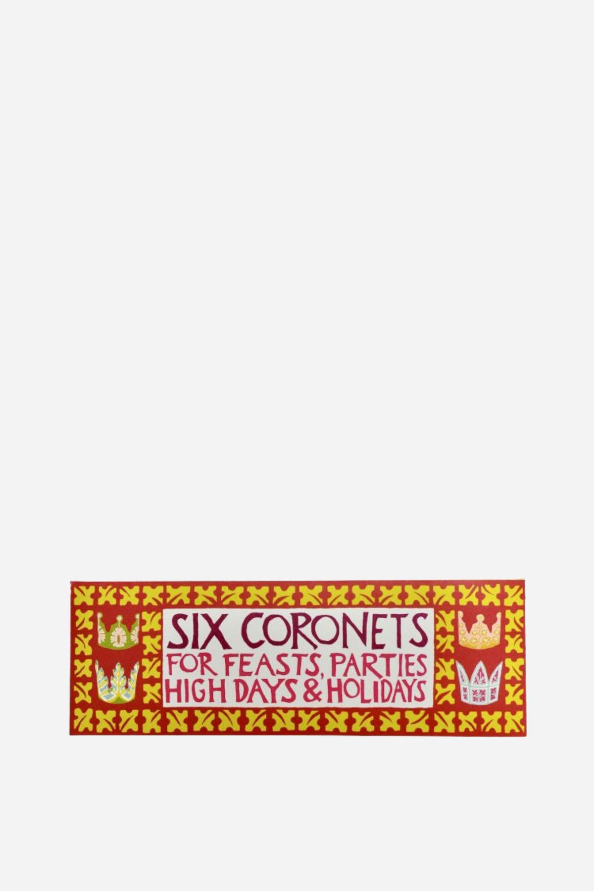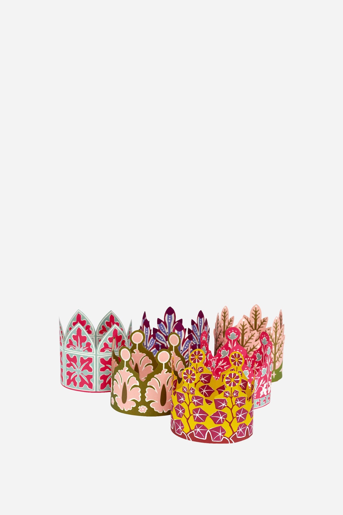 Add a touch of elegance to your celebrations with this set of six patterned paper coronets, each featuring a unique and magnificent design. These coronets are slightly shorter than the traditional crowns but are equally extravagant, ensuring a festive flair for any occasion. The Coronets offer a sustainable and stylish alternative to traditional party hats, adding a touch of charm to your festive celebrations.