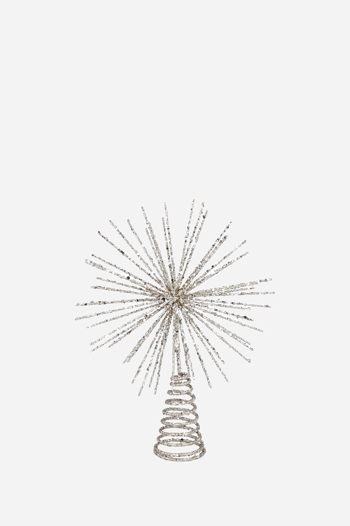 Crown your tree in vintage shimmer with this spiky star tree topper, finished in radiant gold glitter. Its sculpted spikes and light-catching surfaces evoke the sparkle of 1950s Christmas décor, channeling mid‑century glam while keeping things joyfully festive.