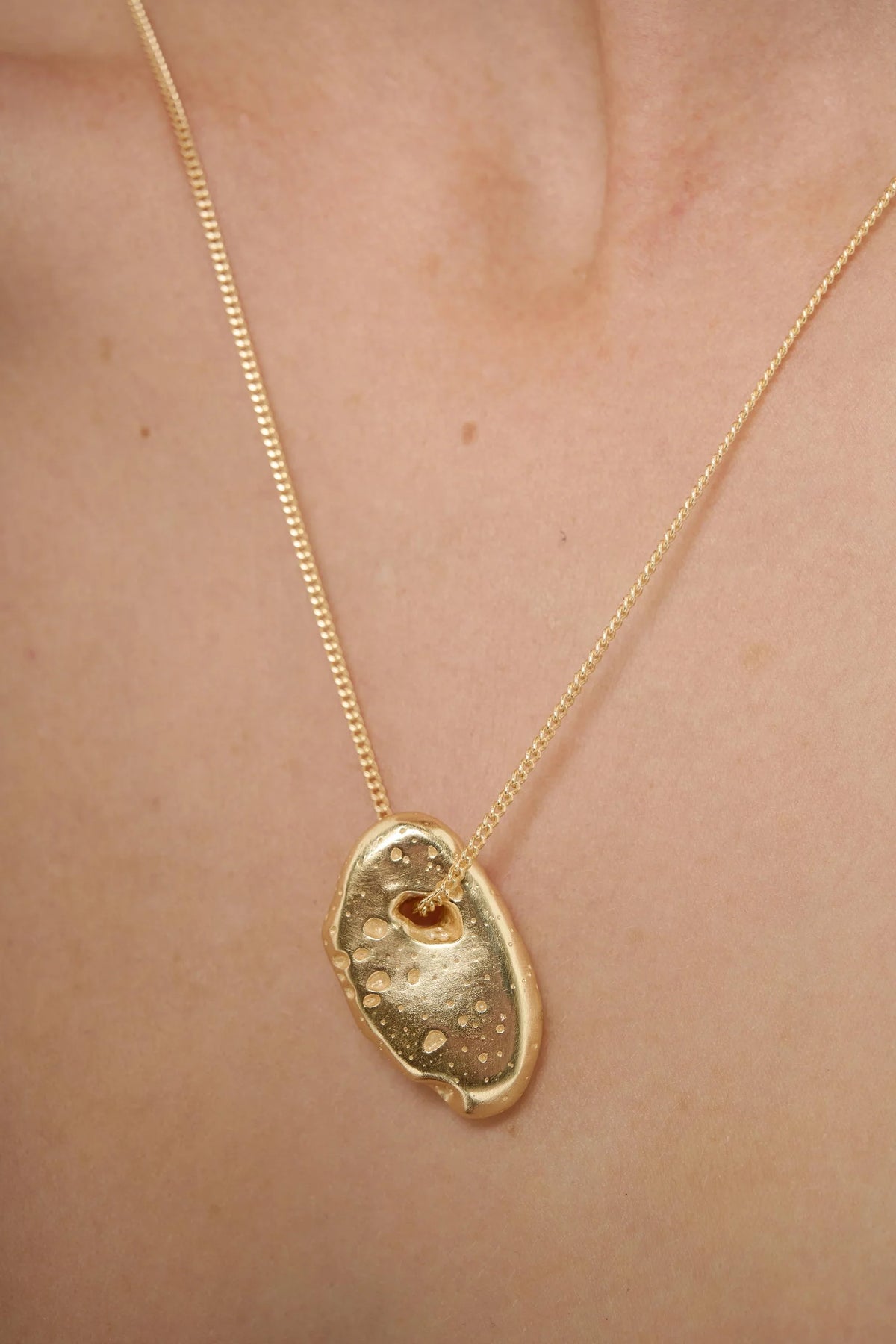 A textured pebble design pendant with a subtly organic feel. It also features a charming inscribed tag for that designer feel. It’s chain is adjustable for the ideal fit. Sealed with advanced E‑coating for resistance against tarnish, water, and perspiration. Gold styles are plated with a considered, gold-tone finish. This piece is also hypoallergenic.