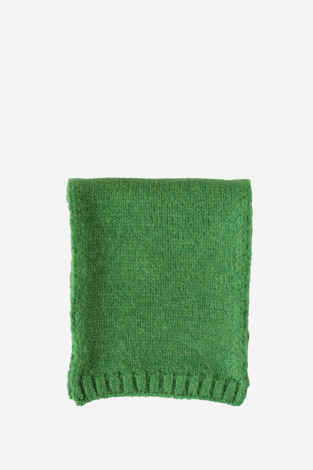 Add a bold pop of colour to your winter wardrobe with our knitted scarf in vibrant green.
