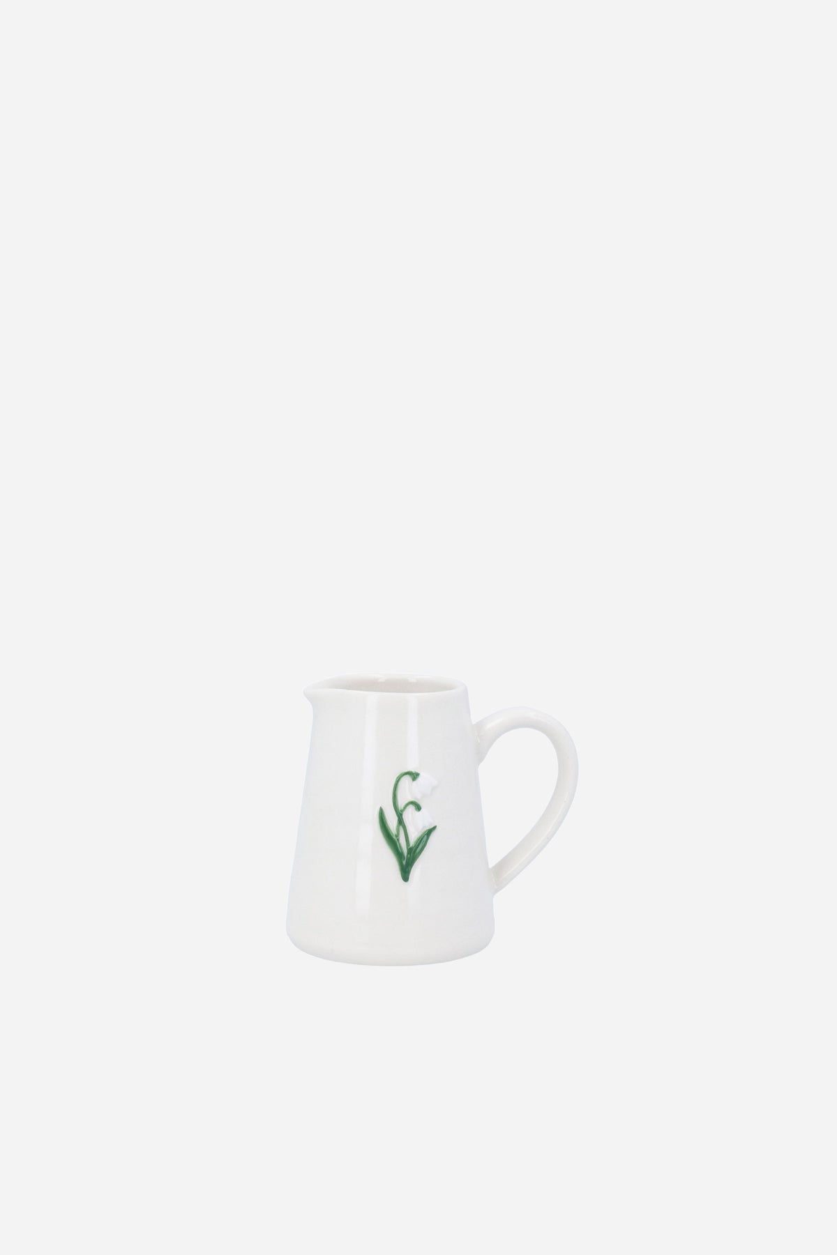 A delicate mini ceramic milk jug featuring a hand-painted snowdrop motif, capturing the quiet charm of early spring. Perfect for serving milk or cream alongside tea or coffee, this petite jug adds a soft seasonal touch to your breakfast table or afternoon tea tray.