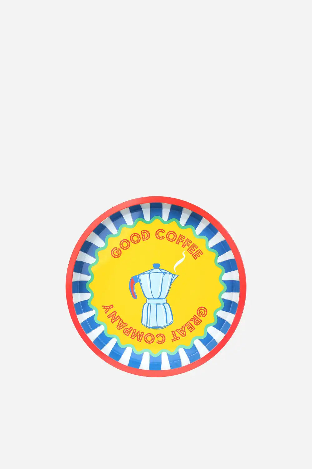 A smart little tray featuring a classic coffee-pot motif and fresh, confident colour, perfect for serving coffee and croissants, mid-morning snacks or an easy breakfast moment.