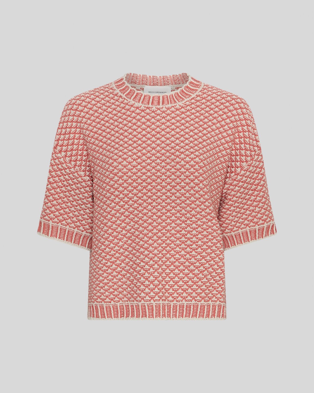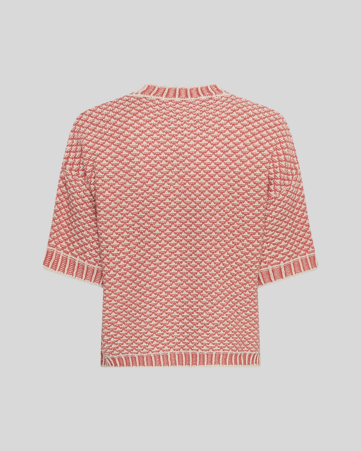 Featuring a graphic knit design and a softly structured silhouette, this short-sleeve pullover is finished with a classic round neckline for a clean, modern look. Ribbed trim at the neckline, sleeves and hem provides a neat finish. Effortlessly versatile, it pairs easily with denim, tailored trousers or relaxed everyday separates.