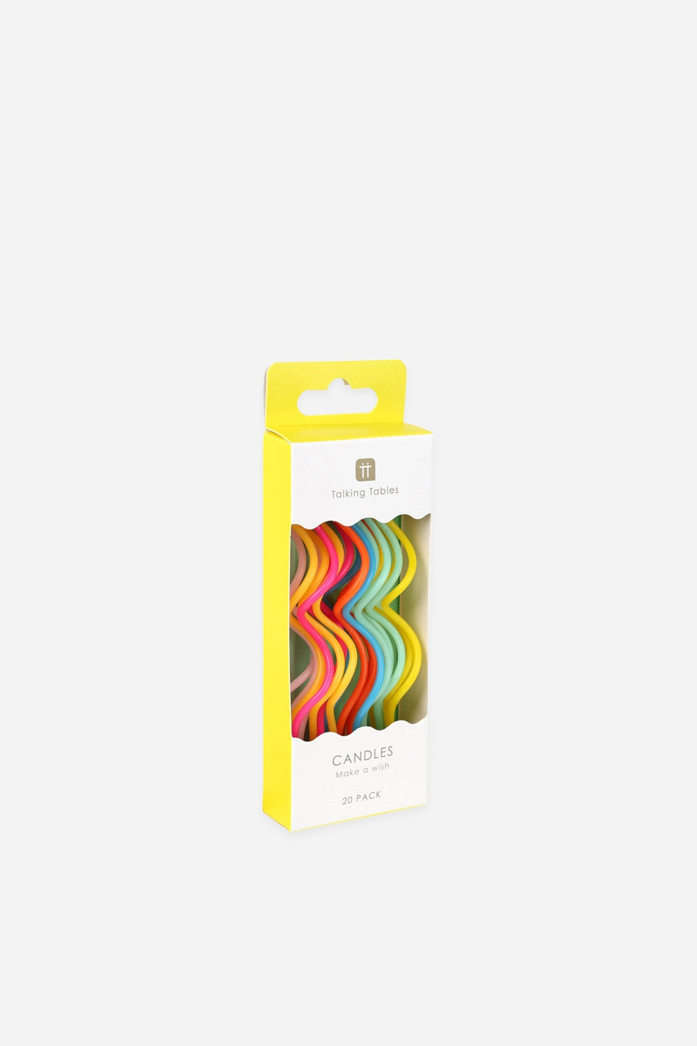 - Pack of 20 rainbow twisted birthday candles.