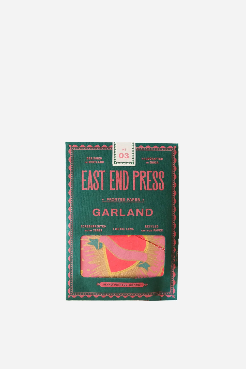 Each heart is screen-printed and sewn by hand, creating a beautifully tactile piece that works just as well draped across a mantelpiece as it does on a wall, shelf or doorway.