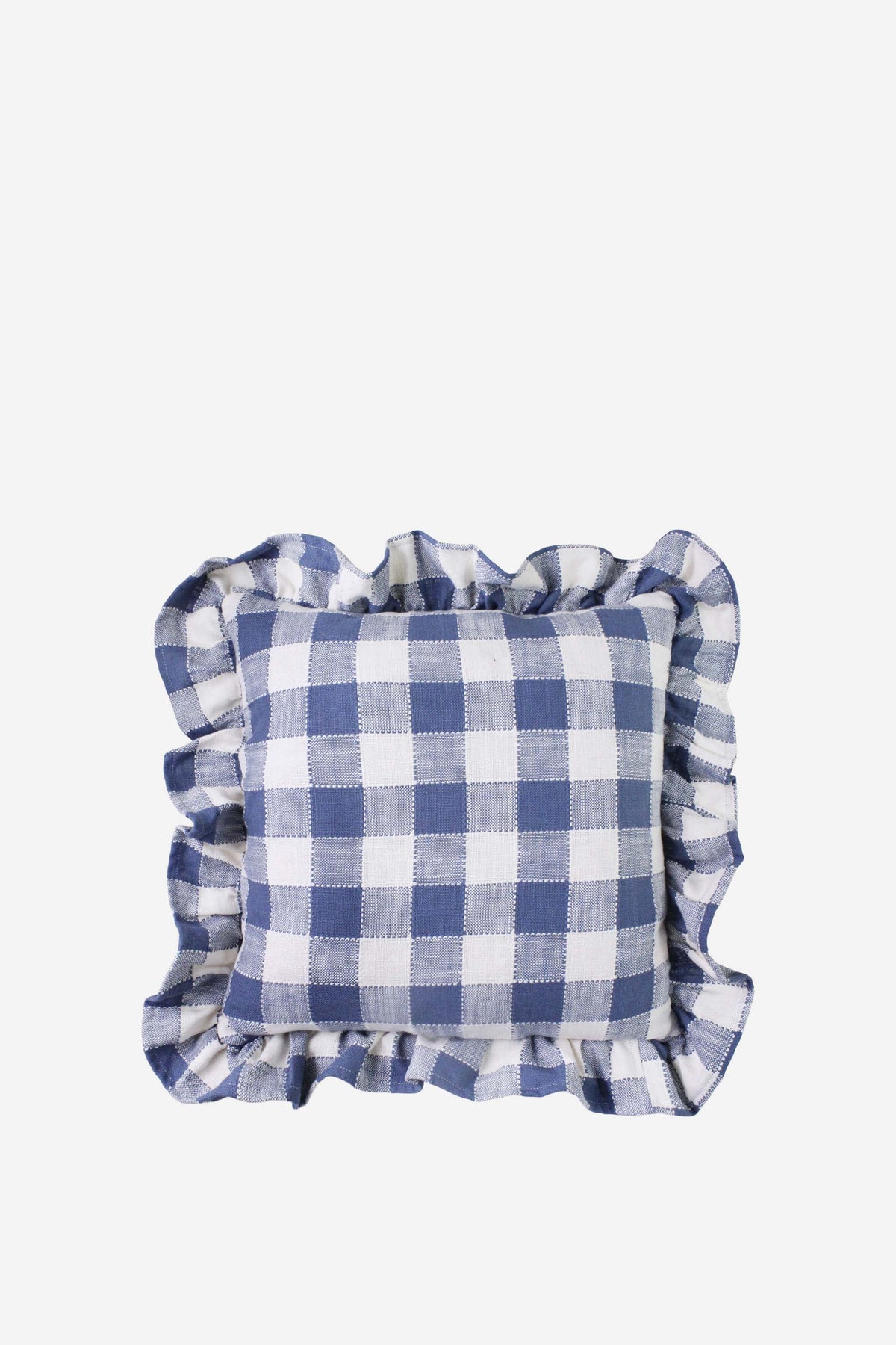 Invite the warmth of autumn into your home with the Ida Cushion Cover, beautifully crafted in a blue and cream check pattern and framed by a charming ruffle edge.