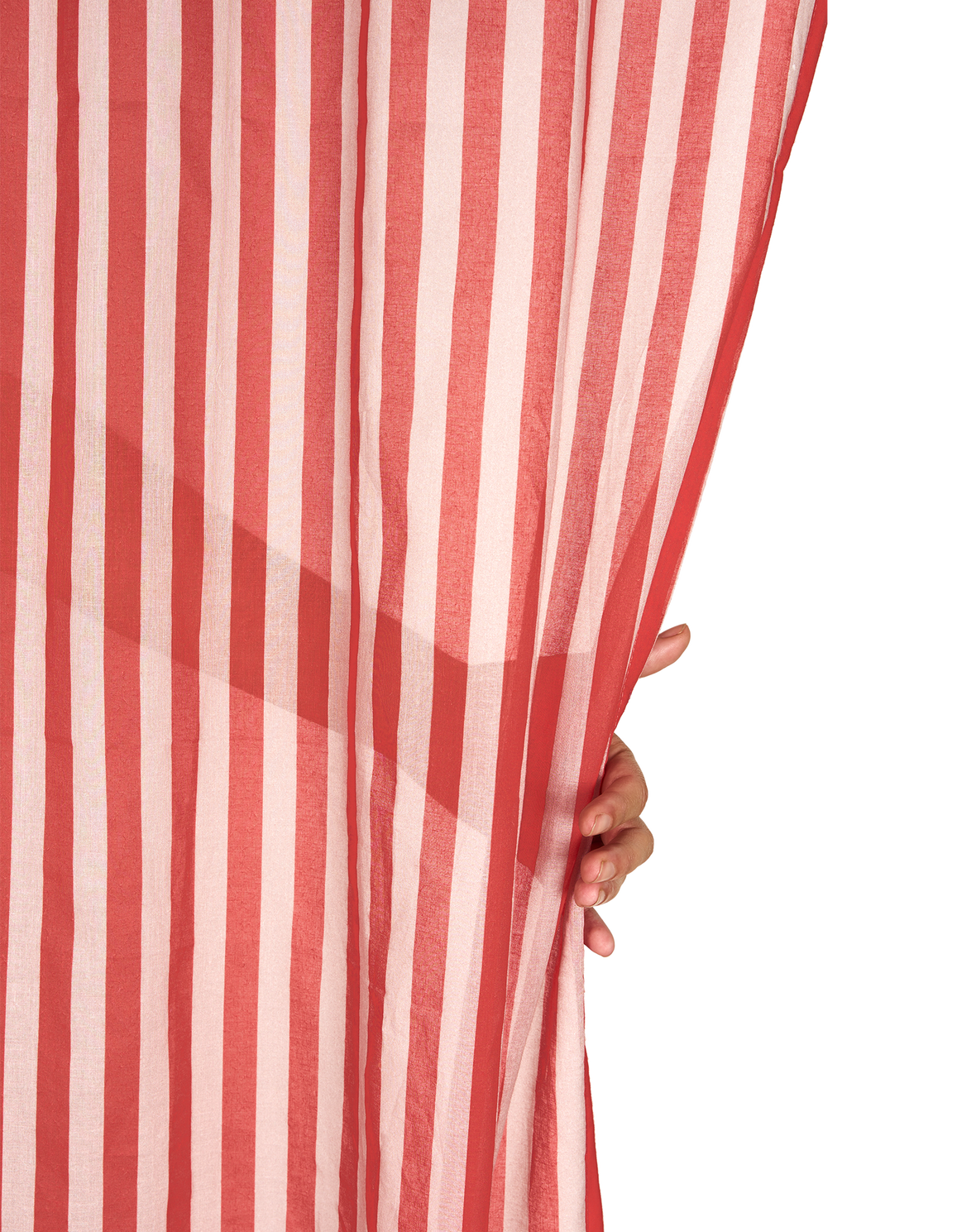 - Sheer cotton voile curtain in red stripes.