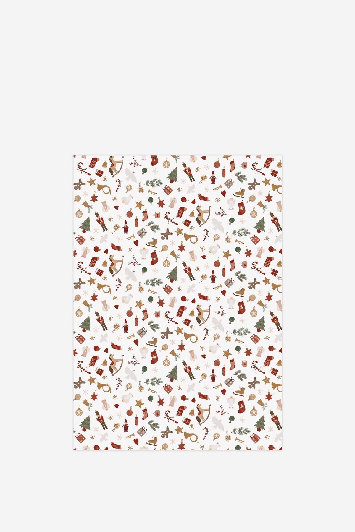 Celebrate the season with this charming gift wrap, featuring a delightful mix of traditional holiday icons — nutcrackers, rocking horses, angels, and candy canes - in a soft, classic colour palette, it evokes the warmth and simple joys of a traditional Christmas. Perfect for adding a heartfelt, festive touch to presents.