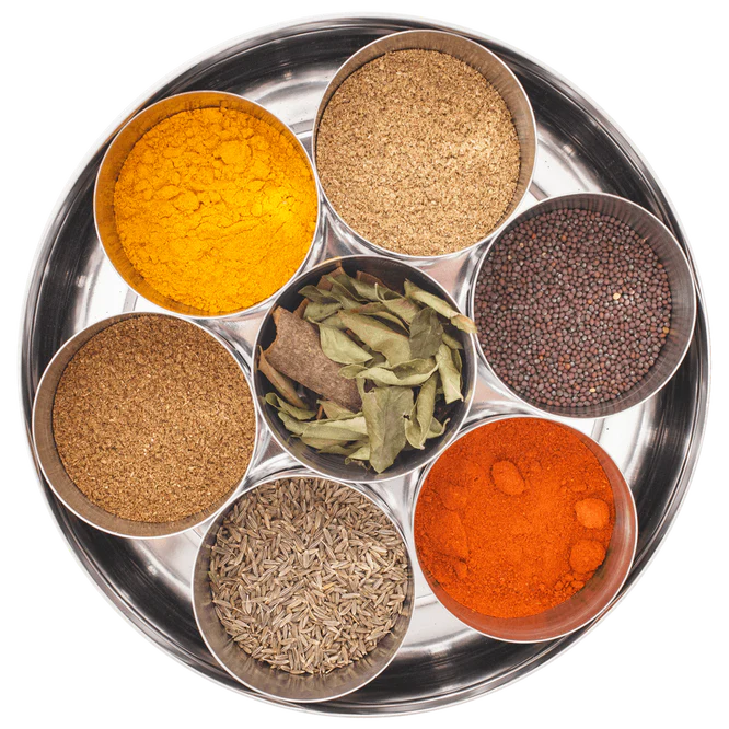 This stainless steel storage tin contains 7 removable spice containers, allowing you to refill and reuse them repeatedly. Experience the traditional Indian way of cooking with our iconic Indian Spice Tin (or Masala Dabba), containing essential spices for making a mouthwatering curry.