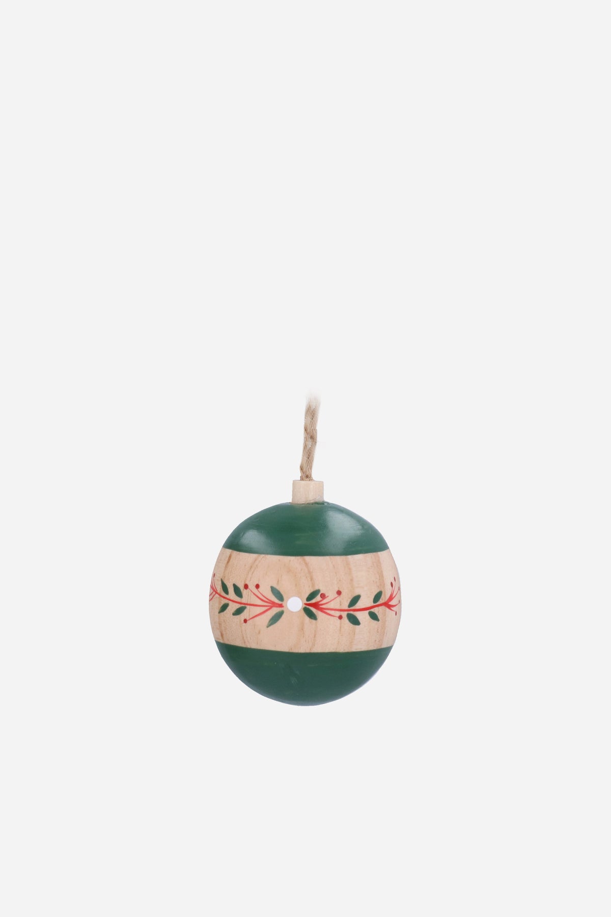 Bring rustic charm to your festive décor with this wooden Alpine folk Christmas bauble. Hand-painted with a simple red and green botanical design on natural wood, this decoration blends classic Nordic style with homespun warmth.