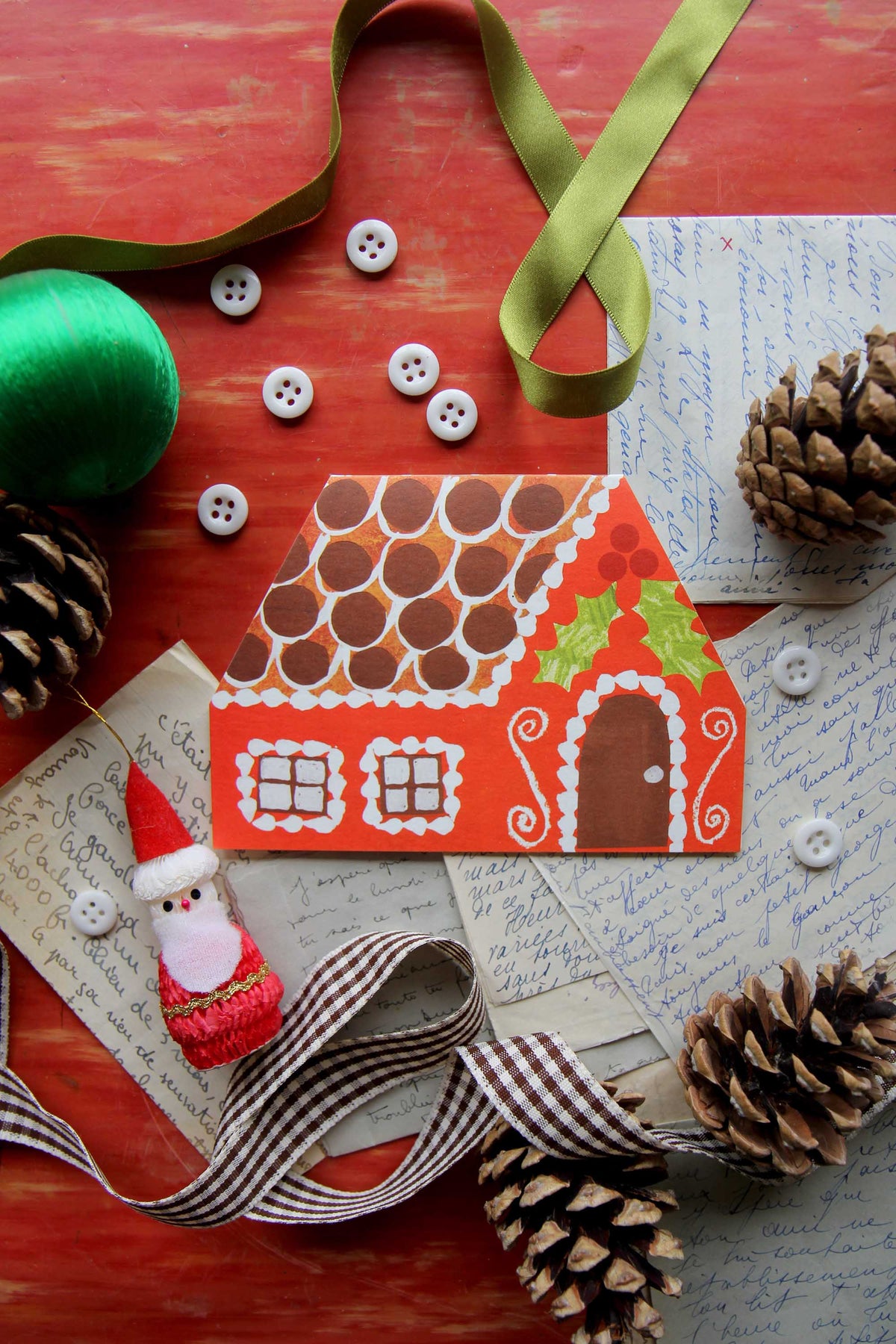Send your Christmas wishes in the post with this sweet festive gingerbread house card. Cut into a house shape for extra cuteness.