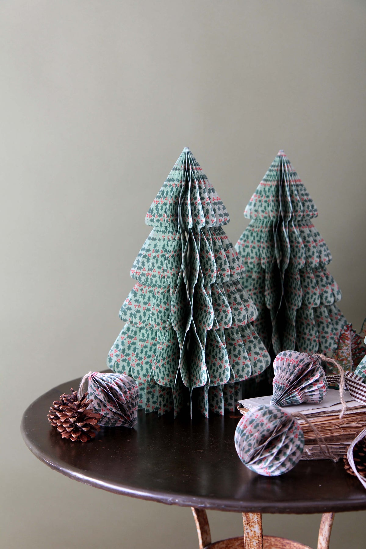 Part of our Yuletide Folk collection, this 40cm honeycomb paper tree in soft green brings a quiet, crafted charm to your festive décor. Designed with a classic holly detail and natural folds, it introduces gentle form and texture to shelves, tabletops, or windowsills.